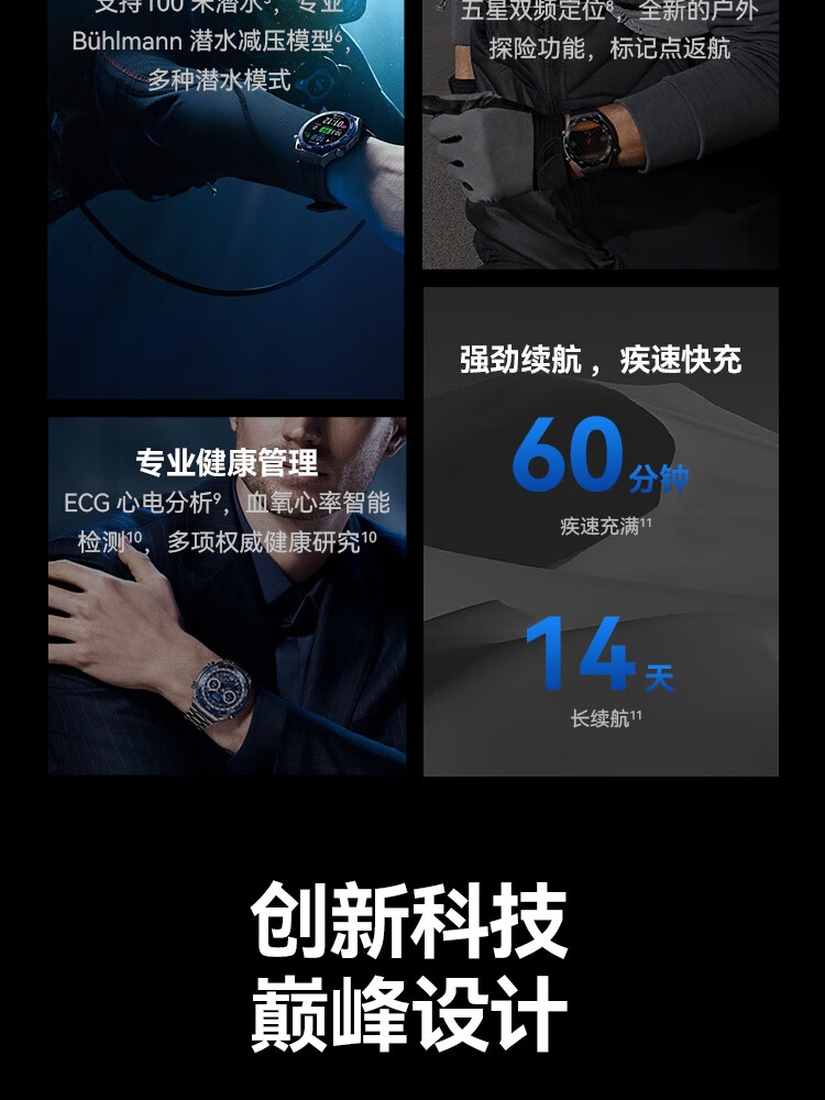 华为HUAWEI WATCH Ultimate 黑色丁腈橡胶 48.5mm表盘 双向北斗卫星消息 华为百米深潜运动智能手表 户外探险