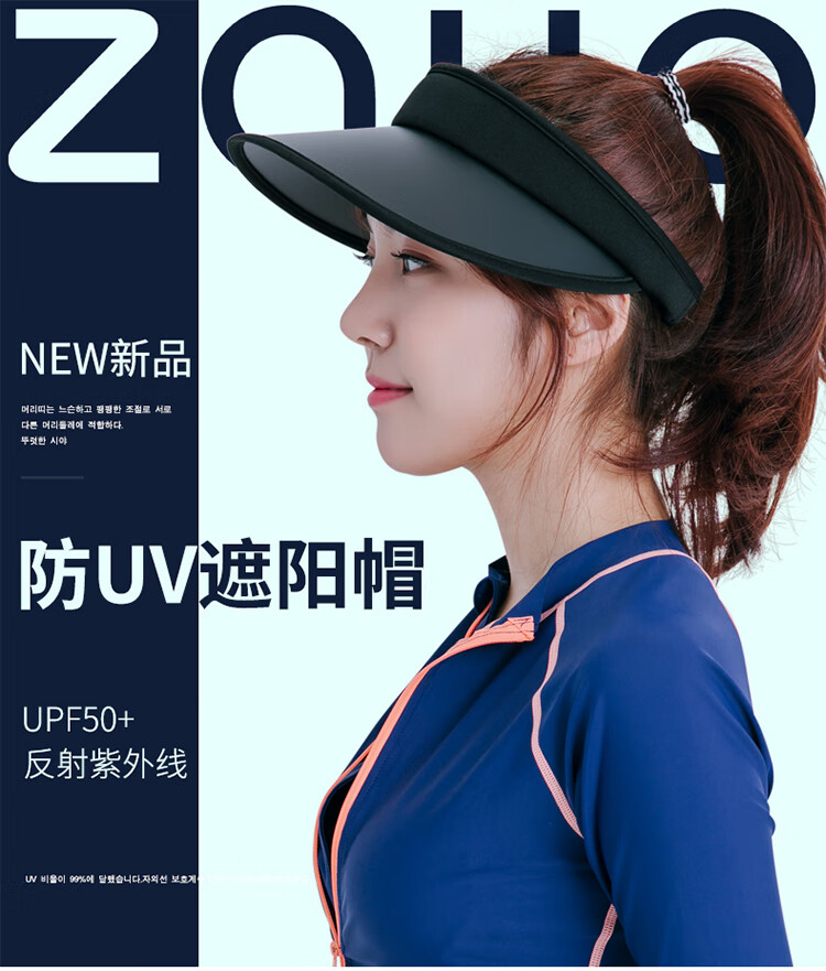商品名称: zauo防晒帽女遮阳帽空顶大帽檐防紫外线 经典款黑色