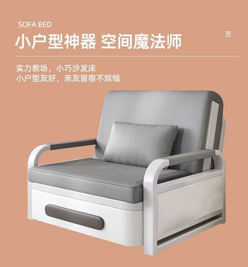 商品名称:闻敏轩折叠沙发床两用多功能坐卧一体单人伸缩抽拉床 80宽(可储物)+7cm海绵