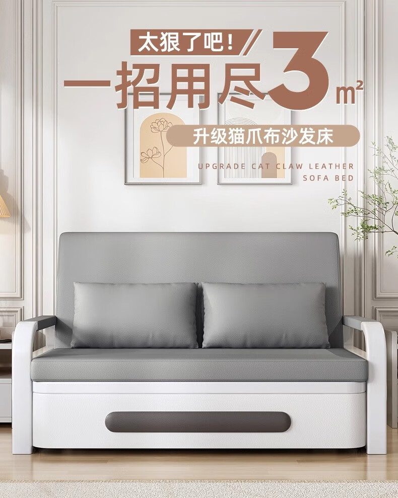 闻敏轩折叠沙发床两用多功能坐卧一体单人伸缩抽拉床 80宽(可储物)+7cm海绵